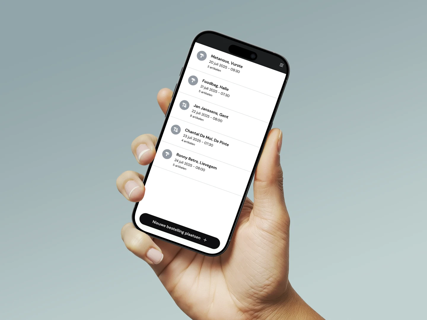 De app bundelt de bestelling en stuurt die rechtstreeks naar de logistieke afdeling. Daar kan men eenvoudig opvolgen, voorbereiden en afhandelen. Zo heeft iedereen altijd een duidelijk overzicht van wat, waar en wanneer nodig is.